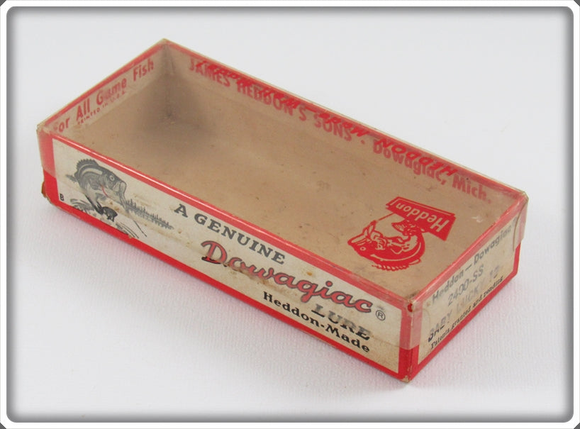 The lure is pretty nice with some normal wear/tight age lines. The box is correctly labeled 2400 SS Baby Lucky 13. This is a tougher wooden with tack and pin eyes model!