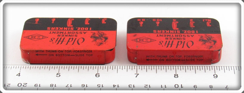 The tins are pretty nice with a little normal wear and they still have some of the sinkers inside. These are not found very often! The price is for the pair.