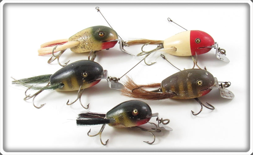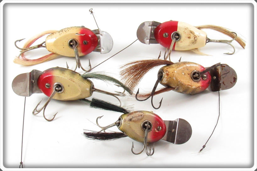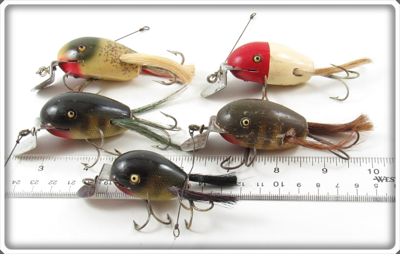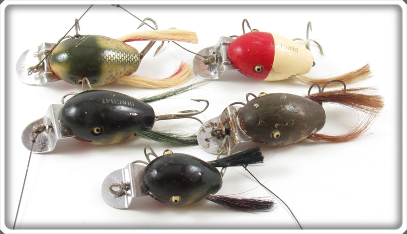 These lures all have some honest wear and hair issues as shown but they are still neat to have. I believe the hair may be replaced on the Baby Dingbat. This could be a good chance to fish some tough lures or display them and appreciate them as they are. The price is for the lot.