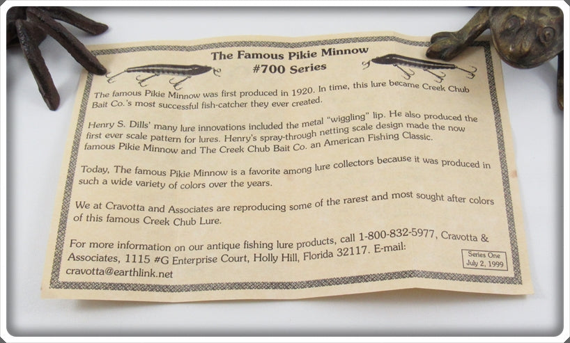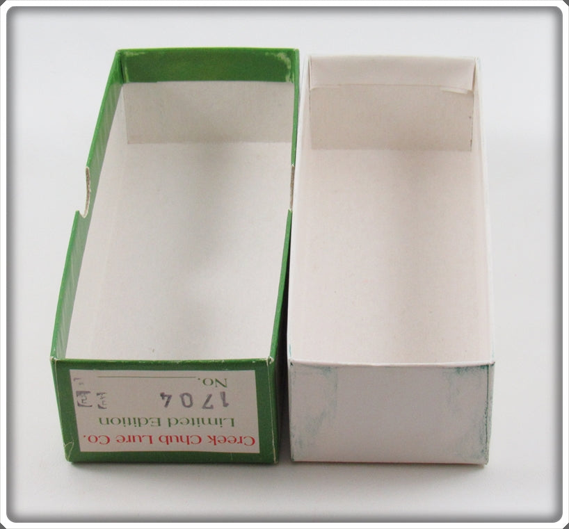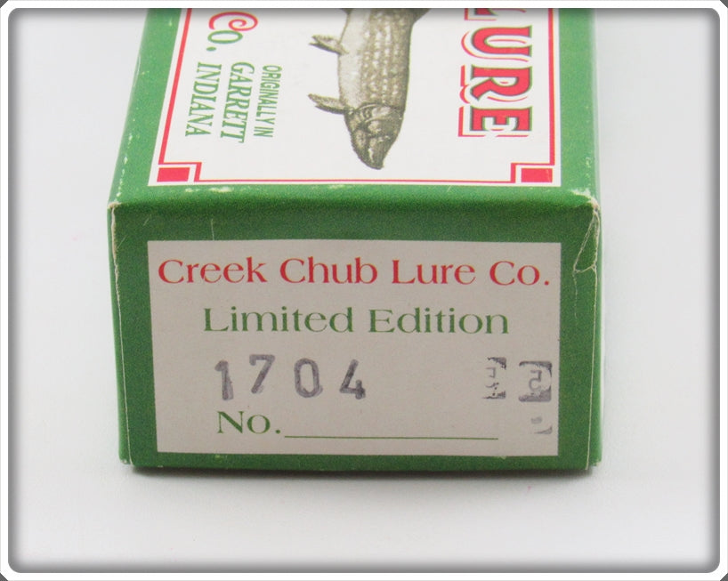 The lure is very nice and unused. The box is correctly stamped 1704 on the end and incorrectly marked 06 on the label on the bottom. This limited edition plastic bait was made in 1999 and is a great find!