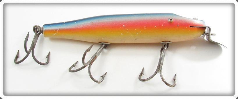 This wooden with tack eyes lure is pretty nice with some expected wear. This pretty color is very desirable!