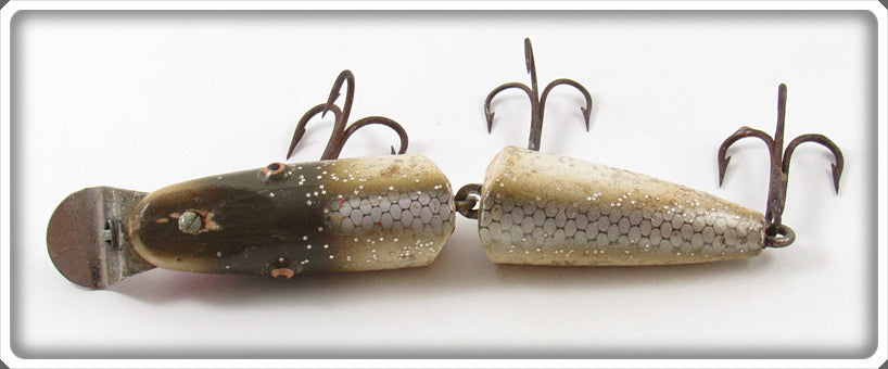 This wooden with tack eyes lure is pretty nice with some expected wear. This is a neat one to fish or collect!