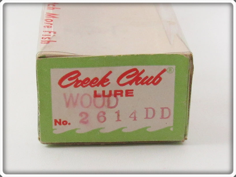 This wooden with tack eyes lure is very nice and unused. The box is correctly stamped 2614 DD. You don't see this combo very often!