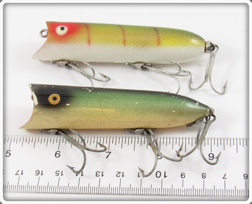The wooden Green Scale Lucky 13 has a bit of use wear and the plastic Perch Lucky 13 is nice with light wear. These are both neat colors to snatch up! The price is for the pair.