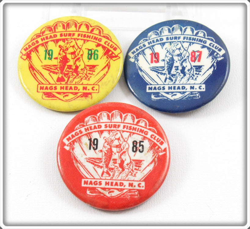 1985 - 1987 Nags Head Surf Fishing Club Pin Lot Of Three