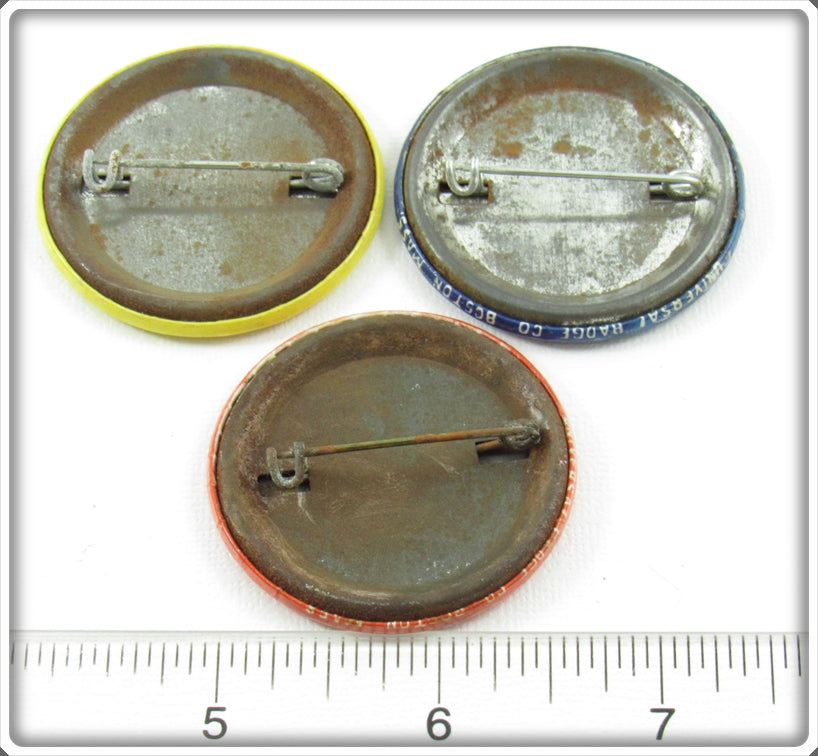 The pins are nice with a little normal wear and some rust on the backs. These fun pins are tough to find! The price is for the lot.
