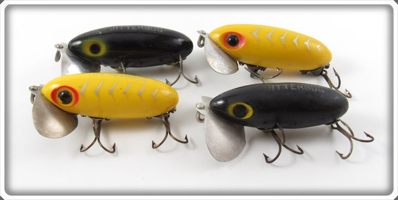Arbogast Black & Yellow Silver Ribs Jitterbug Lot Of Four