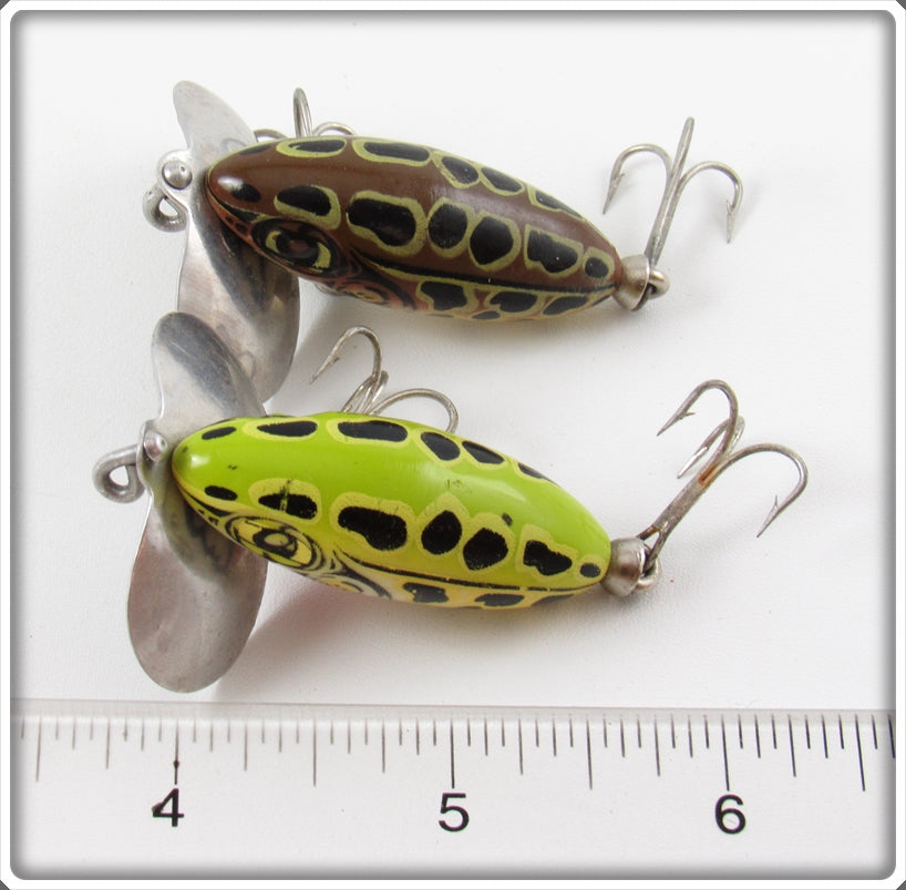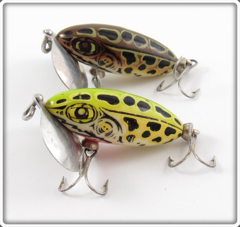Arbogast Brown Leopard Frog & Green Leopard Frog Spinning Jitterbug Pair