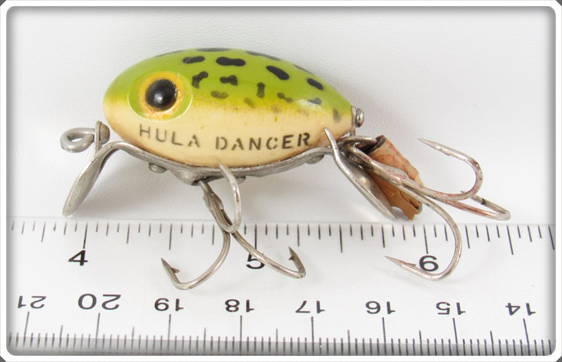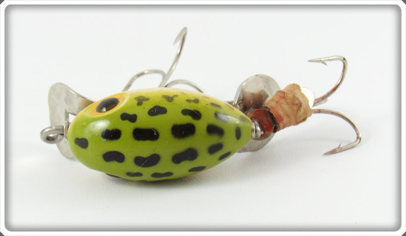 This is a nice old Fred Arbogast Frog Spot Hula Dancer lure that was sold on Lure Lagoon! Vintage old fishing lures are added for sale often so keep checking back! I buy old lures so feel free to contact me if you have any to sell.
