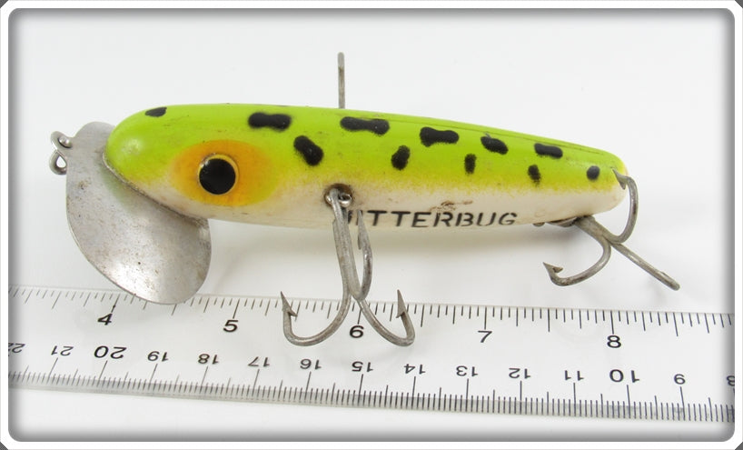This is a nice old Fred Arbogast Frog Spot Musky Jitterbug lure that was sold on Lure Lagoon! Vintage old fishing lures are added for sale often so keep checking back! I buy old lures so feel free to contact me if you have any to sell.