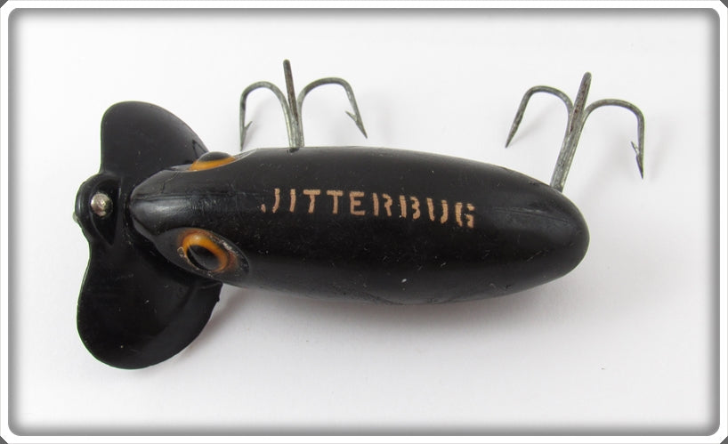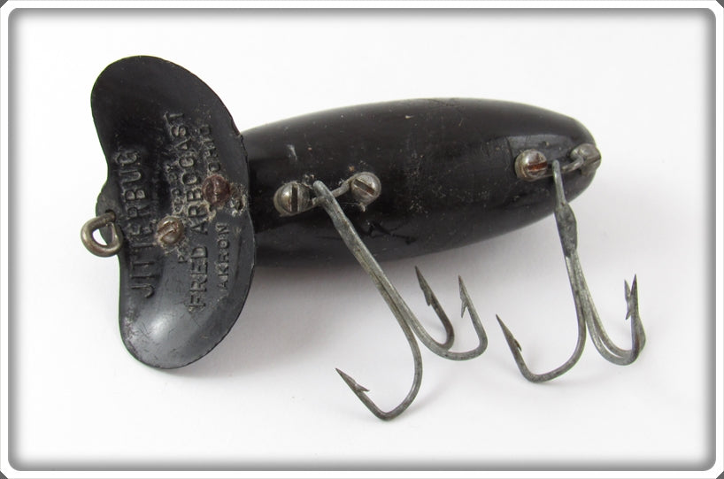 This is a nice old Fred Arbogast Solid Black Plastic Lip WW2 Jitterbug lure that was sold on Lure Lagoon! Vintage old fishing lures are added for sale often so keep checking back! I buy old lures so feel free to contact me if you have any to sell.
