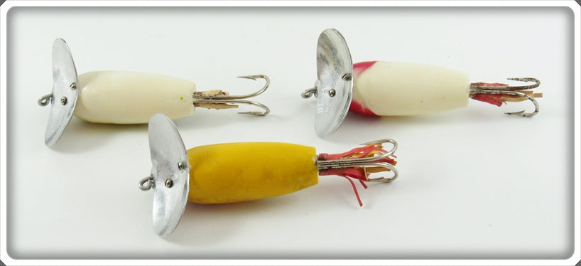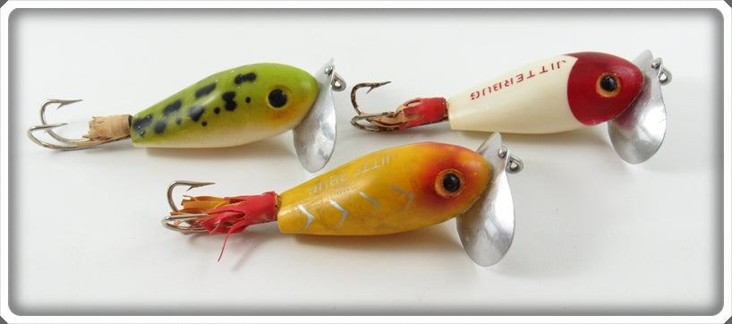 Arbogast Yellow Shore, Frog & Red Head White Weedless Jitterbug Lot Of Three