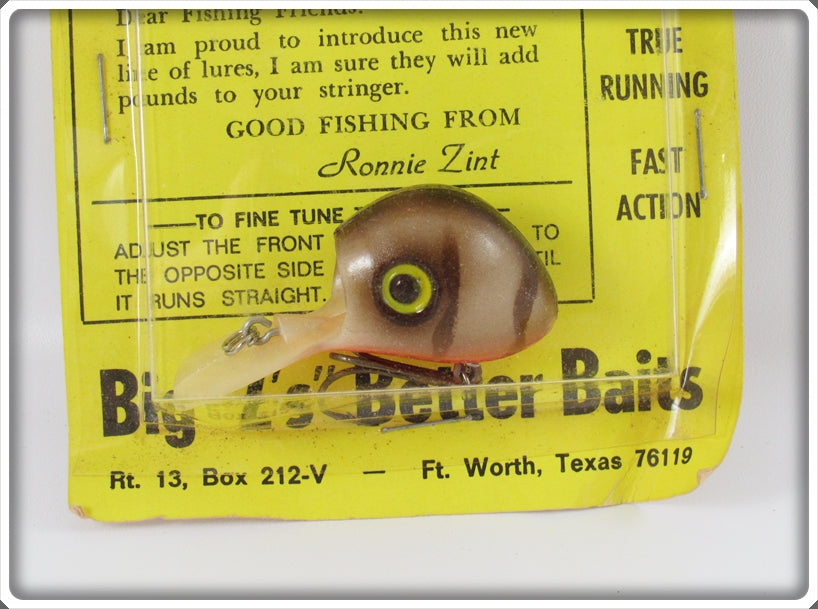 Big Z's Better Baits Ronnie Zint's Brown Crawdad Porky Ubangi On Card