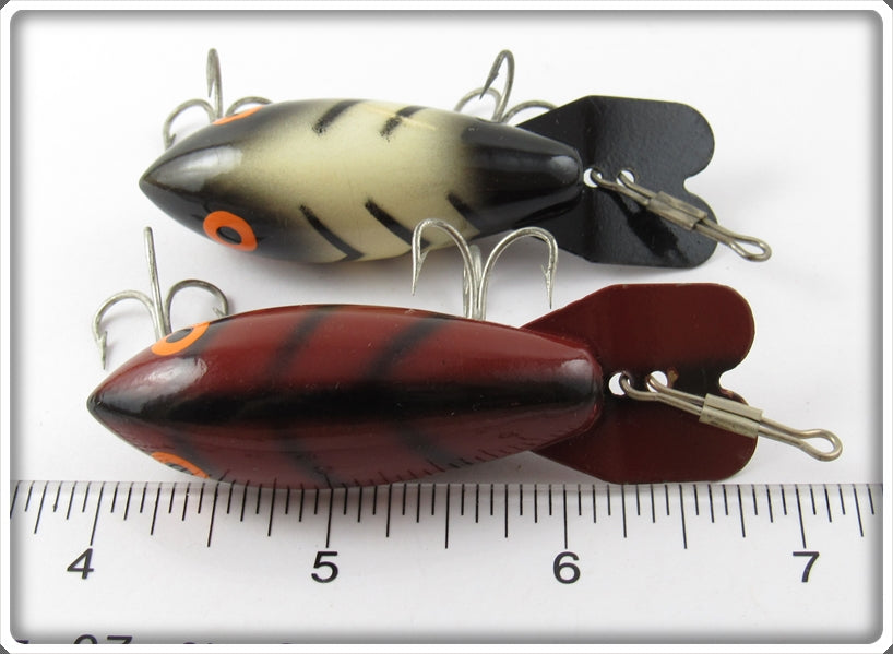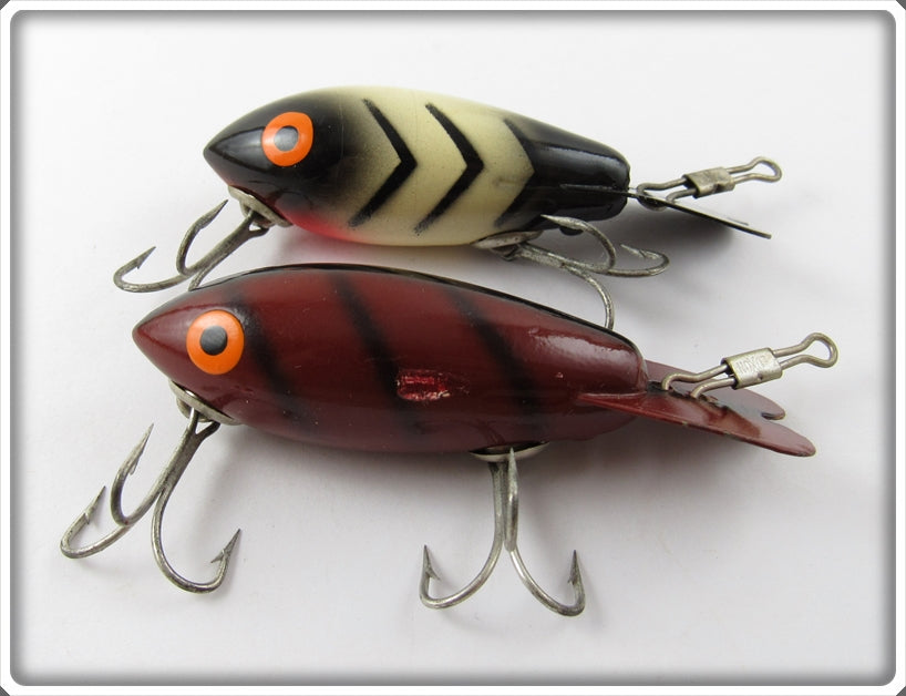 This is a nice old lure pair that was sold on Lure Lagoon! Vintage old fishing lures are added for sale often so keep checking back! I buy old lures so feel free to contact me if you have any to sell.