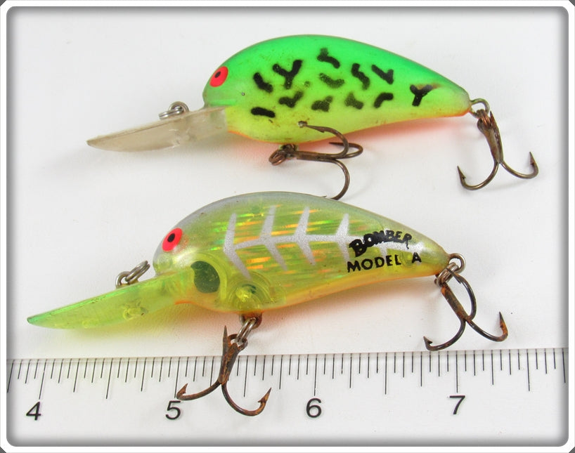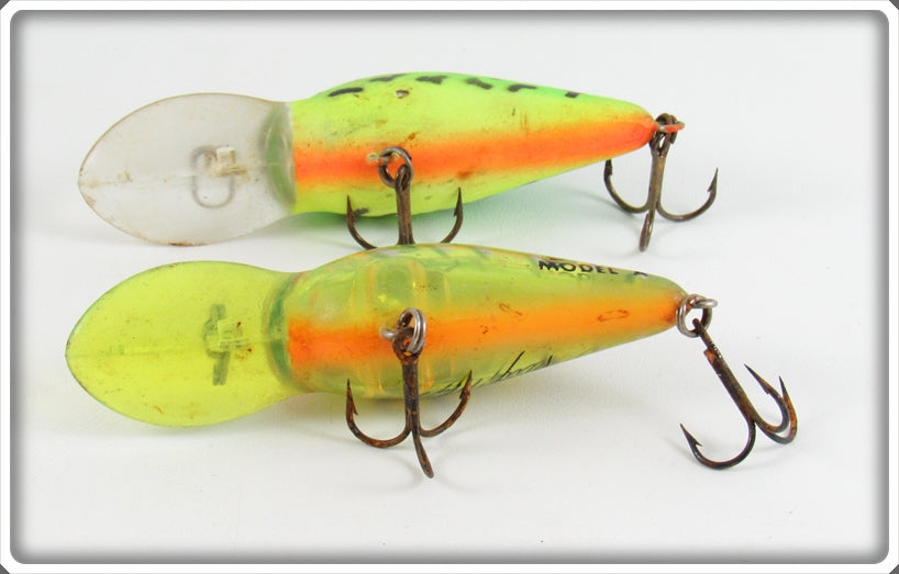 This is a nice old Bomber Fire Tiger & Silver Ribs Model A lure pair that was sold on Lure Lagoon! Vintage old fishing lures are added for sale often so keep checking back! I buy old lures so feel free to contact me if you have any to sell.