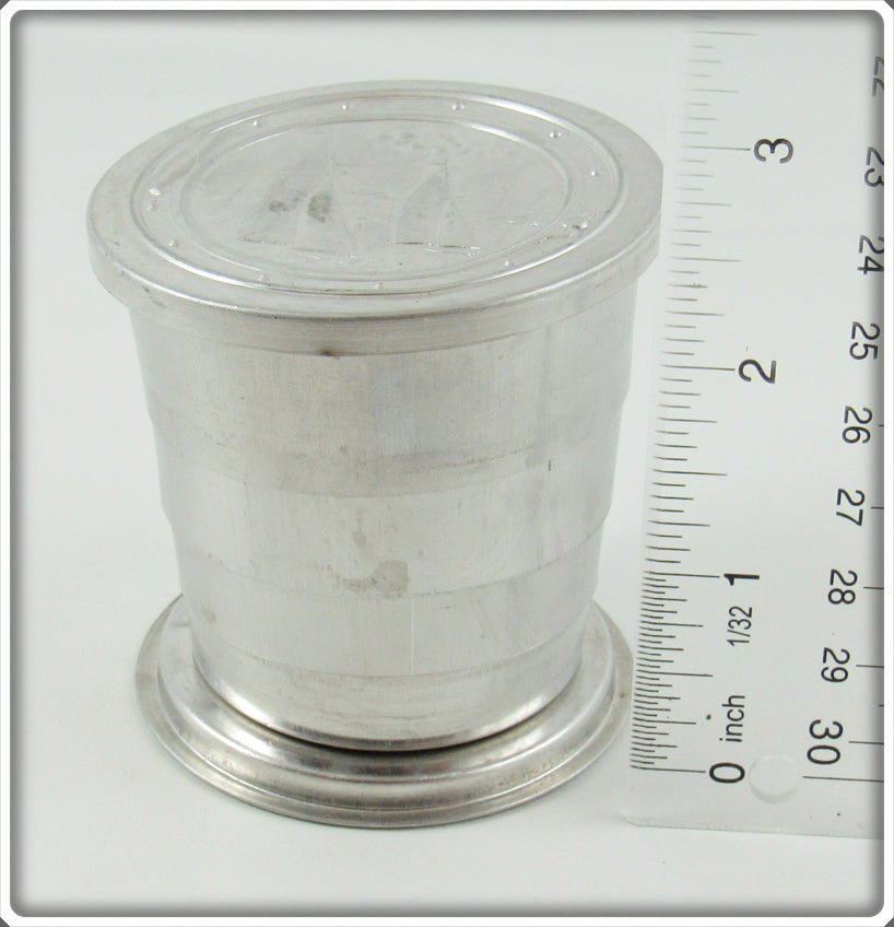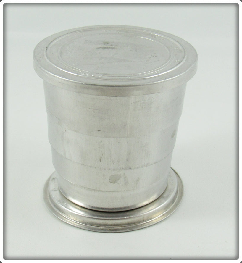 This is a nice old Metal Collapsible Camping Cup that was sold on Lure Lagoon! Vintage old fishing lures are added for sale often so keep checking back! I buy old lures so feel free to contact me if you have any to sell.
