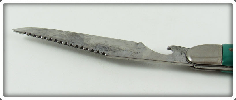 This is a nice old Colonial Prov. USA Green Folding Fish Knife that was sold on Lure Lagoon! Vintage old fishing lures are added for sale often so keep checking back! I buy old lures so feel free to contact me if you have any to sell.
