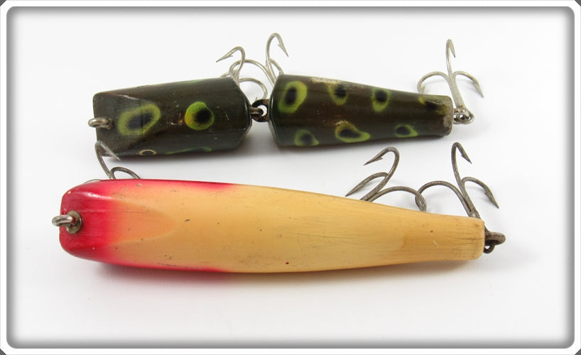 This is a nice old Creek Chub Frog & Red Head White Darter lure pair that was sold on Lure Lagoon! Vintage old fishing lures are added for sale often so keep checking back! I buy old lures so feel free to contact me if you have any to sell.