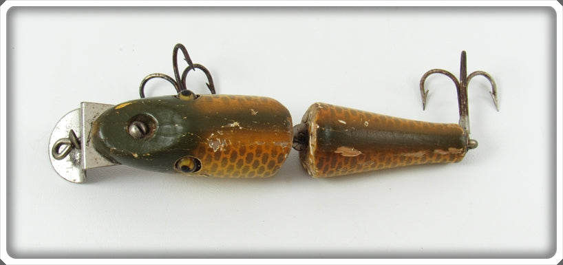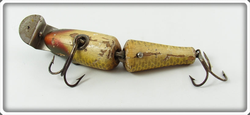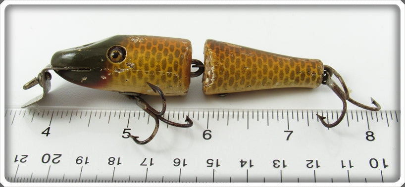 This is a nice old Creek Chub Golden Shiner Jointed Baby Pikie lure that was sold on Lure Lagoon! Vintage old fishing lures are added for sale often so keep checking back! I buy old lures so feel free to contact me if you have any to sell.