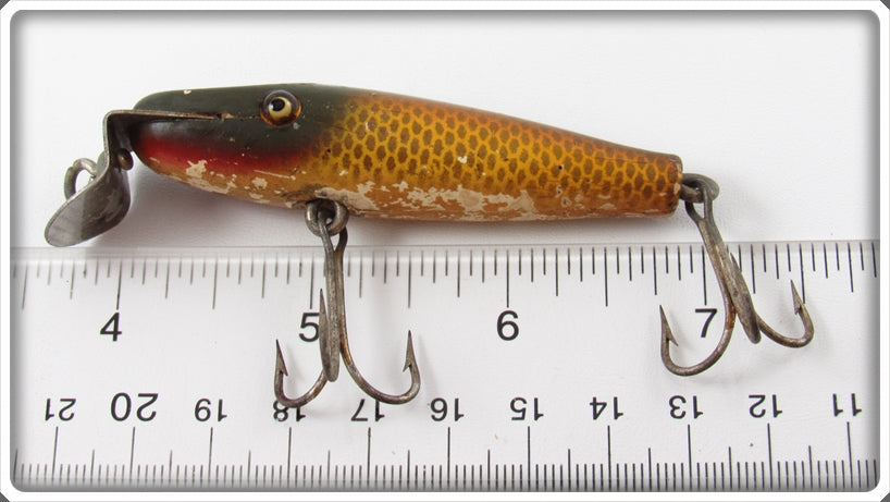 This is a nice old Creek Chub Golden Shiner Midget Pikie lure that was sold on Lure Lagoon! Vintage old fishing lures are added for sale often so keep checking back! I buy old lures so feel free to contact me if you have any to sell.