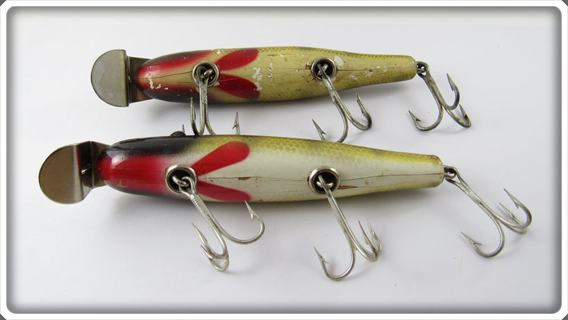 This is a nice old lure pair that was sold on Lure Lagoon! Vintage old fishing lures are added for sale often so keep checking back! I buy old lures so feel free to contact me if you have any to sell.