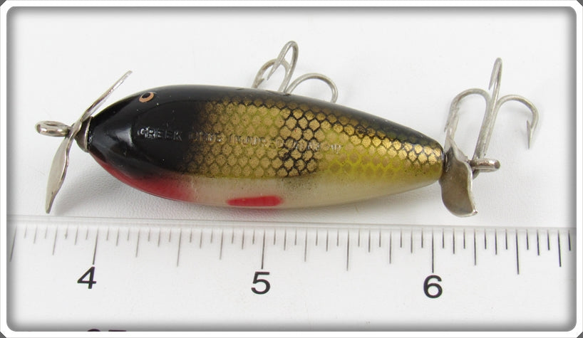 This is a nice old Creek Chub Perch Spinning Injured Minnow lure that was sold on Lure Lagoon! Vintage old fishing lures are added for sale often so keep checking back! I buy old lures so feel free to contact me if you have any to sell.