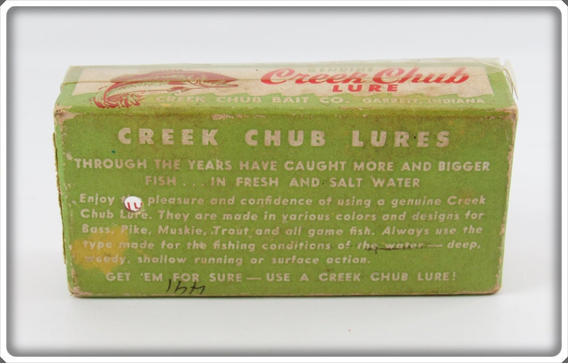 This is a nice old Creek Chub Bait Company Silver Flash Concave Belly Midget Darter lure box that was sold on Lure Lagoon! Vintage old fishing lures are added for sale often so keep checking back! I buy old lures so feel free to contact me if you have any to sell.