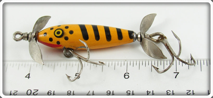 This is a nice old Eger Orange & Black Baby Dillinger lure that was sold on Lure Lagoon! Vintage old fishing lures are added for sale often so keep checking back! I buy old lures so feel free to contact me if you have any to sell.