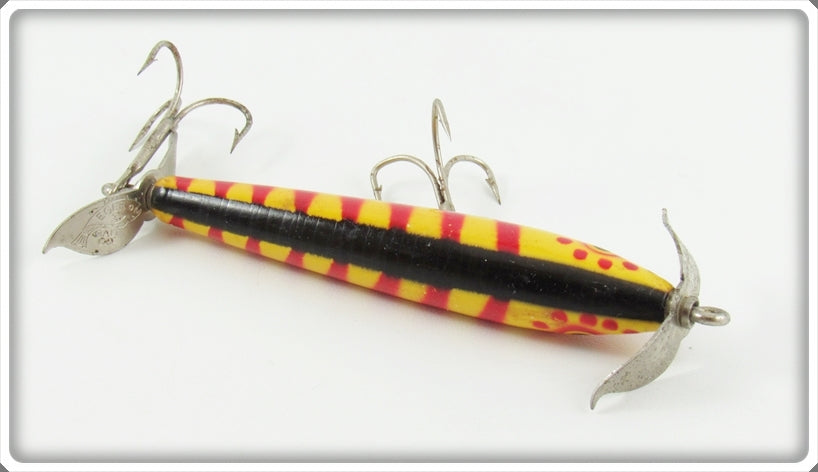 This is a nice old Eger Yellow With Red Stripes Dillinger lure that was sold on Lure Lagoon! Vintage old fishing lures are added for sale often so keep checking back! I buy old lures so feel free to contact me if you have any to sell.