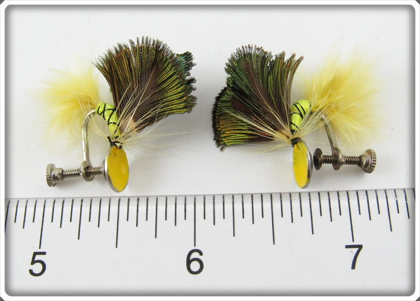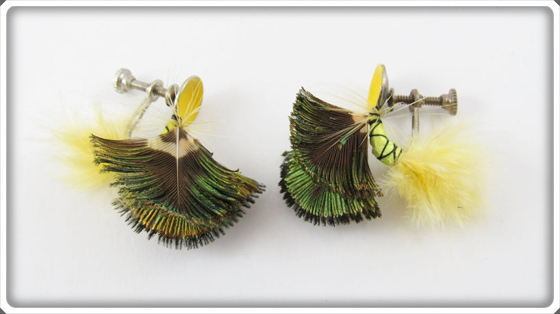 This is a nice old Feather Fads Fly Earrings & Hat Pins set that was sold on Lure Lagoon! Vintage old fishing lures are added for sale often so keep checking back! I buy old lures so feel free to contact me if you have any to sell.