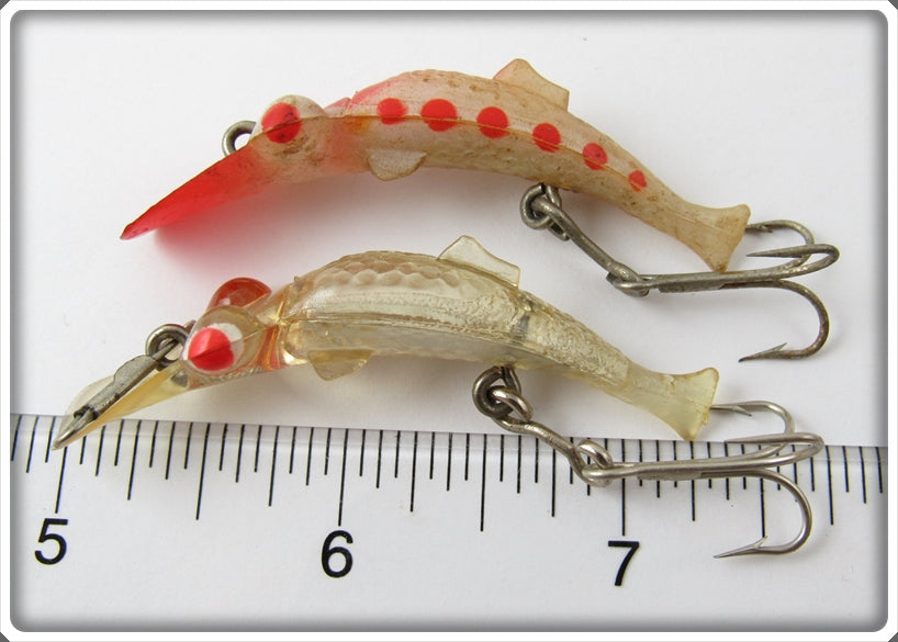 This is a nice old Fisherman International Clear & Red Spotted Lucky Lady lure pair that was sold on Lure Lagoon! Vintage old fishing lures are added for sale often so keep checking back! I buy old lures so feel free to contact me if you have any to sell.