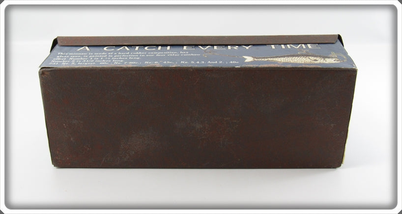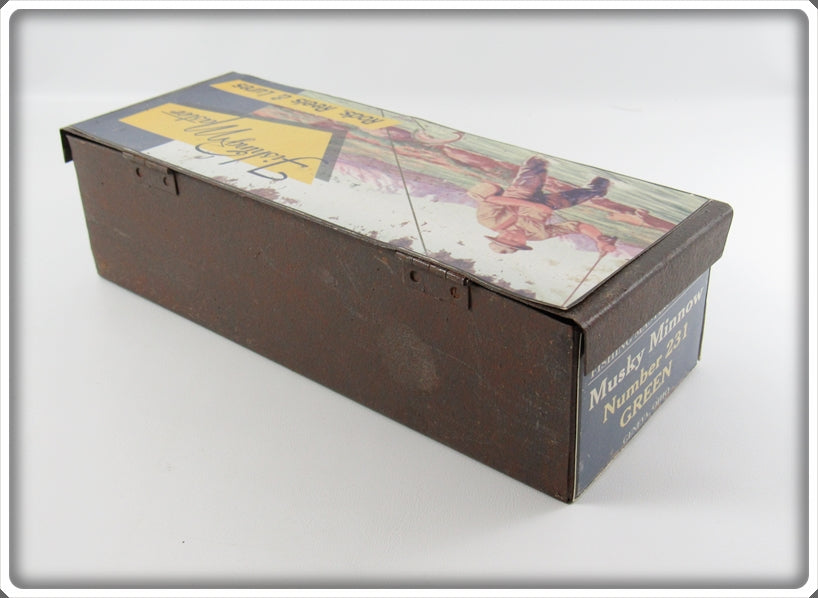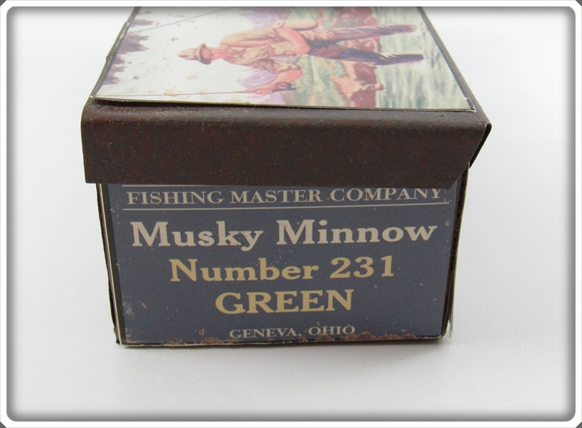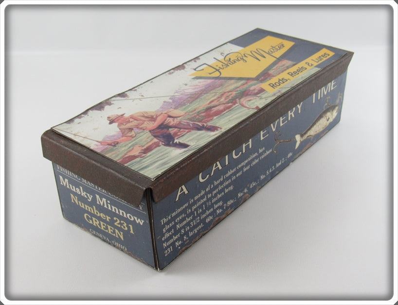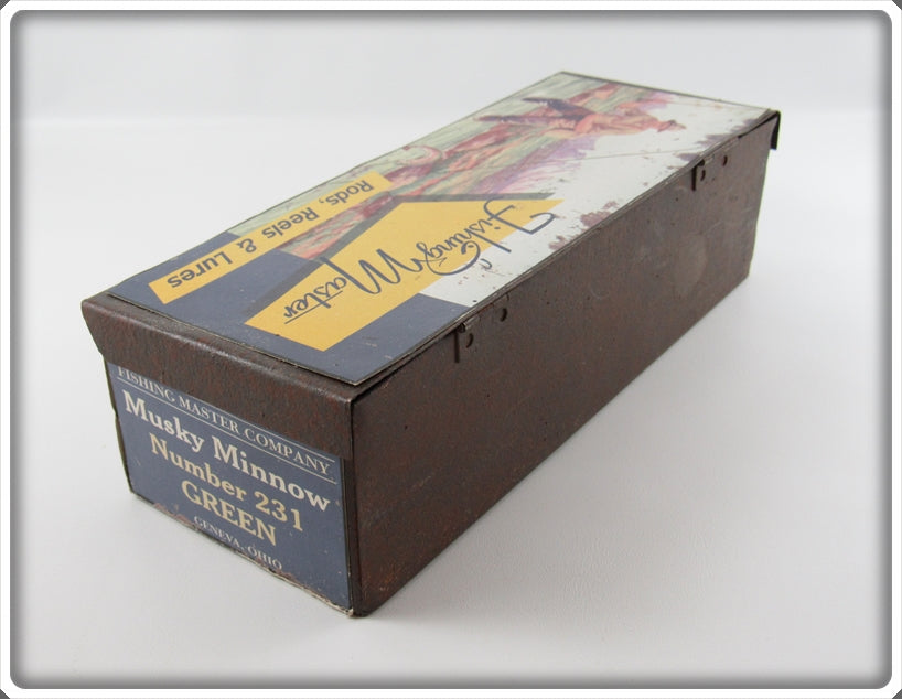 This is a nice Fishing Master Co Green Musky Minnow lure tin that was sold on Lure Lagoon! Vintage old fishing lures are added for sale often so keep checking back! I buy old lures so feel free to contact me if you have any to sell.