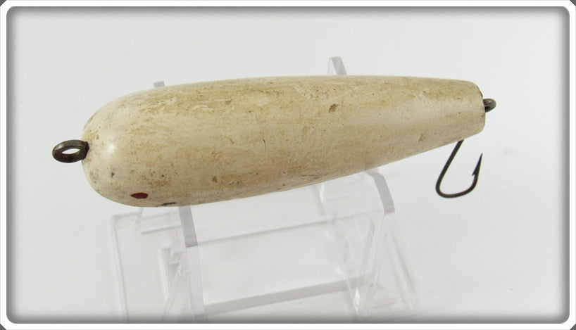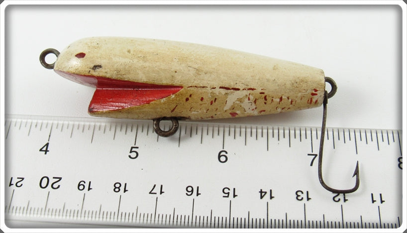 This is a nice old Folk Art White Surprise Minnow Type lure that was sold on Lure Lagoon! Vintage old fishing lures are added for sale often so keep checking back! I buy old lures so feel free to contact me if you have any to sell.
