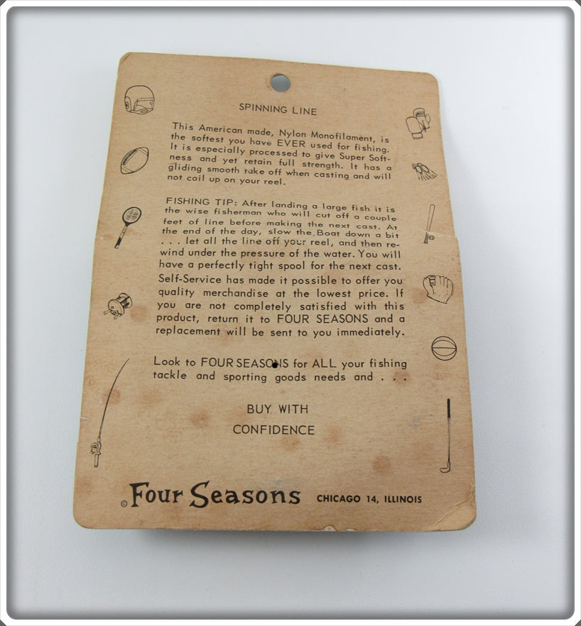 This is a nice old Four Seasons Super Soft Monofilament Line that was sold on Lure Lagoon! Vintage old fishing lures are added for sale often so keep checking back! I buy old lures so feel free to contact me if you have any to sell.