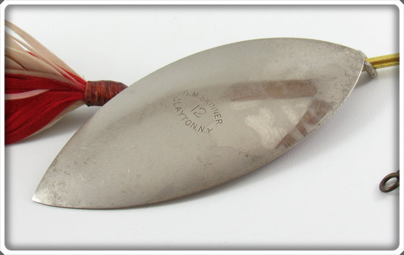 This is a nice old GM Skinner No 12 Spinner lure that was sold on Lure Lagoon! Vintage old fishing lures are added for sale often so keep checking back! I buy old lures so feel free to contact me if you have any to sell.