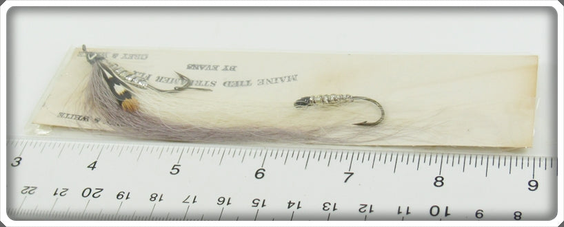 Glen Evans Grey & White Maine Tied Streamer Fly On Card