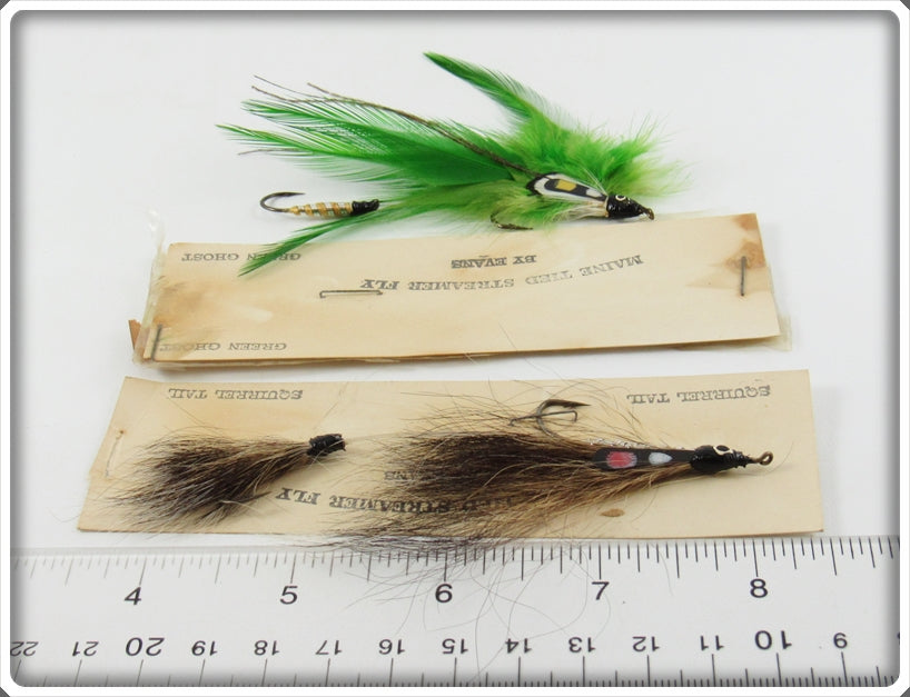 Glen Evans Squirrel Tail & Green Ghost Maine Tied Streamer Fly Pair On Cards