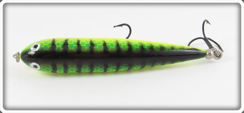 This is a nice old Green Scale Black Stripes Topwater Crankbait lure that was sold on Lure Lagoon! Vintage old fishing lures are added for sale often so keep checking back! I buy old lures so feel free to contact me if you have any to sell.