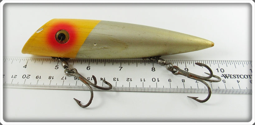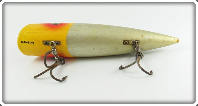 This is a nice old Hanson Silver & Yellow Salmon Plug lure that was sold on Lure Lagoon! Vintage old fishing lures are added for sale often so keep checking back! I buy old lures so feel free to contact me if you have any to sell.