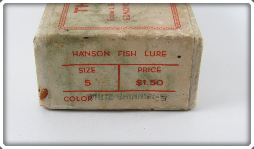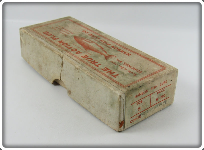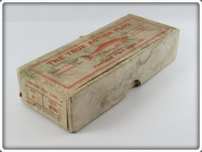 This is a nice Hanson White Shinner Salmon Plug lure that was sold on Lure Lagoon! Vintage old fishing lures are added for sale often so keep checking back! I buy old lures so feel free to contact me if you have any to sell.