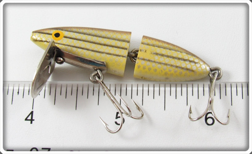 This is a nice old Harrison Hoge Striper Super Rocky lure that was sold on Lure Lagoon! Vintage old fishing lures are added for sale often so keep checking back! I buy old lures so feel free to contact me if you have any to sell.