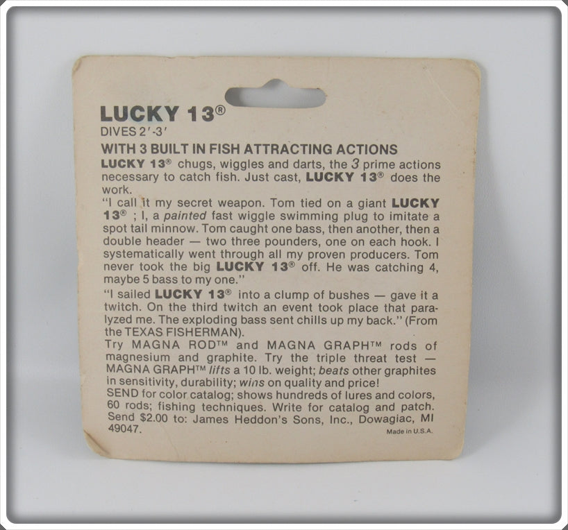 Heddon Baby Bass Tiny Lucky 13 On Card