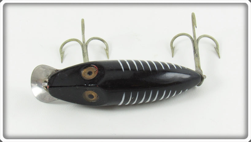 This is a nice old Heddon Black Shore Early River Runt Spook Sinker lure that was sold on Lure Lagoon! Vintage old fishing lures are added for sale often so keep checking back! I buy old lures so feel free to contact me if you have any to sell.