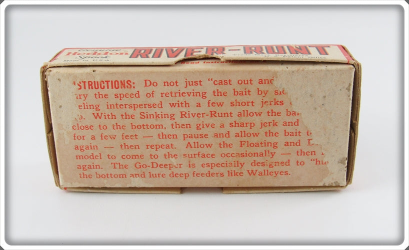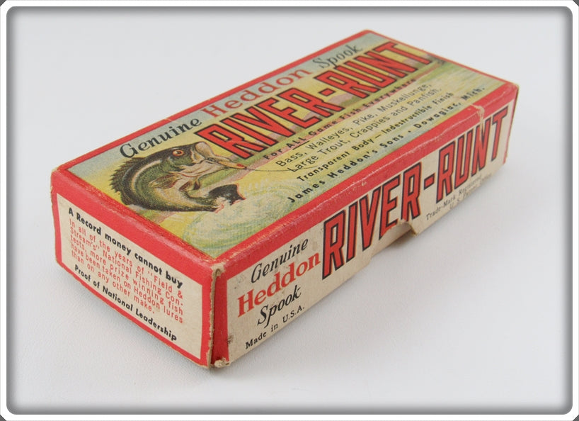 This is a nice old Heddon River Runt lure box that was sold on Lure Lagoon! Vintage old fishing lures are added for sale often so keep checking back! I buy old lures so feel free to contact me if you have any to sell.