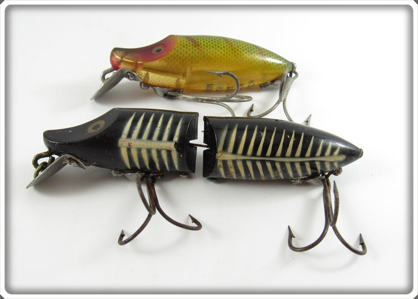 This is a nice old Heddon Black Shore & Perch River Runt lure pair that was sold on Lure Lagoon! Vintage old fishing lures are added for sale often so keep checking back! I buy old lures so feel free to contact me if you have any to sell.