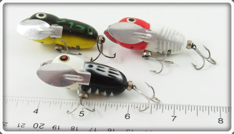 Heddon BWH, Bullfrog & Red White Shore Tiny Crazy Crawler Lot Of Three