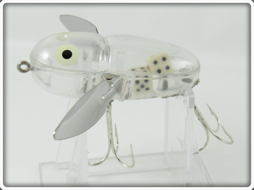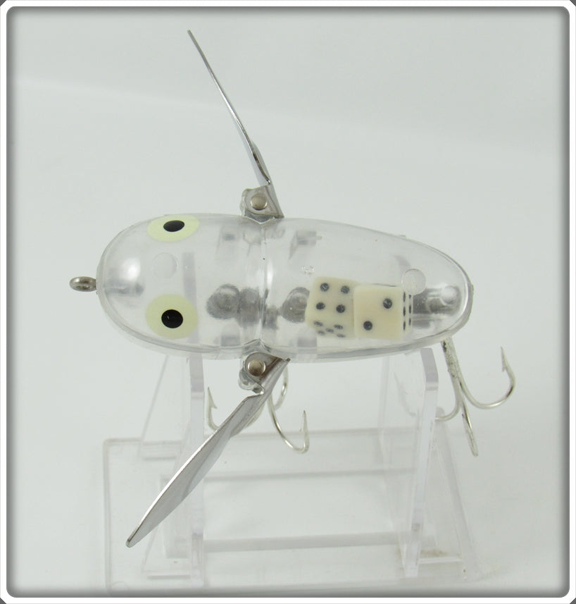 This is a nice old Heddon Transparent With Dice Inside Crazy Crawler lure that was sold on Lure Lagoon! Vintage old fishing lures are added for sale often so keep checking back! I buy old lures so feel free to contact me if you have any to sell.