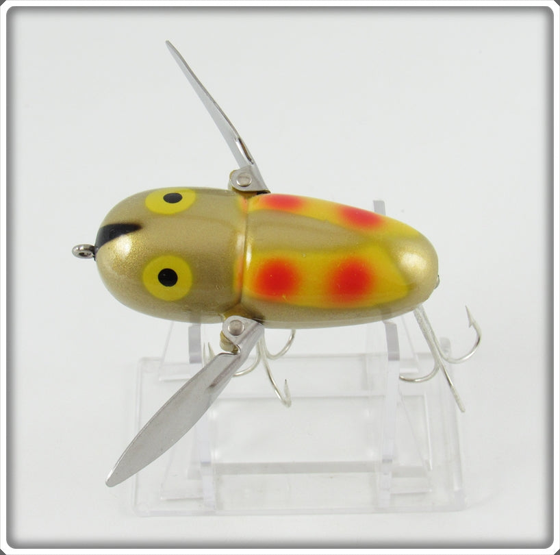 This is a nice old Heddon Gold Yellow Wings Crazy Crawler lure that was sold on Lure Lagoon! Vintage old fishing lures are added for sale often so keep checking back! I buy old lures so feel free to contact me if you have any to sell.