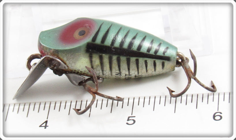 This is a nice old Heddon Green Shore Midgit Digit lure that was sold on Lure Lagoon! Vintage old fishing lures are added for sale often so keep checking back! I buy old lures so feel free to contact me if you have any to sell.