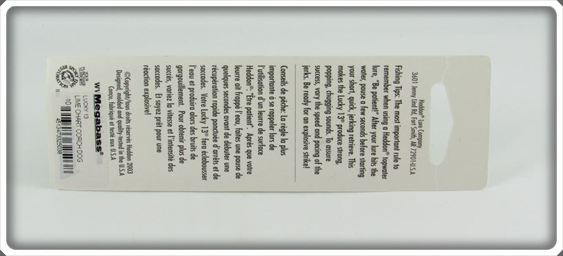 Heddon Megabass Lime Chartreuse Coachdog Lucky 13 On Card
